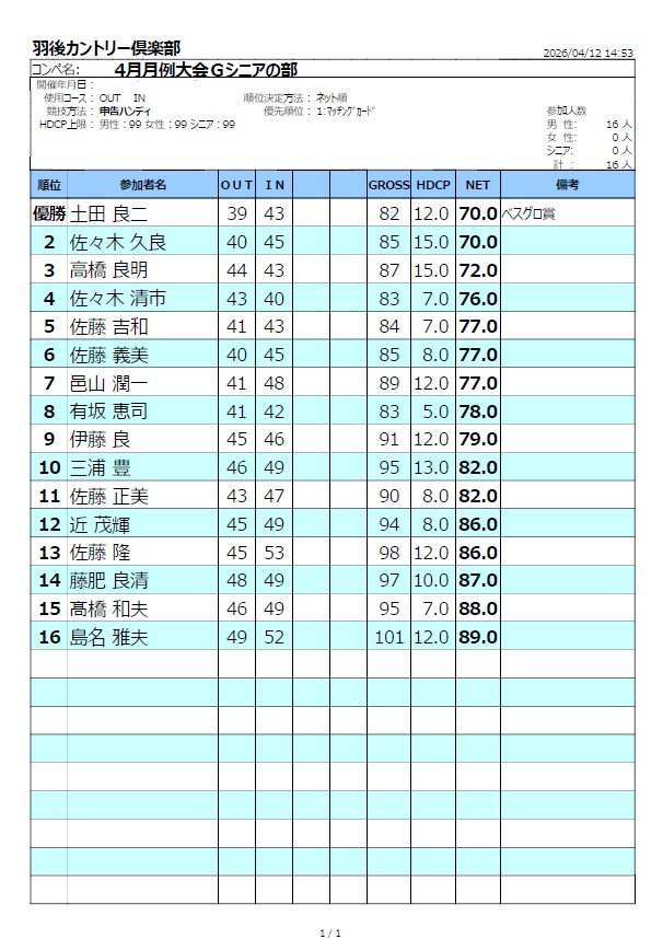 羽後カントリー倶楽部役員 (2019年~2020年)