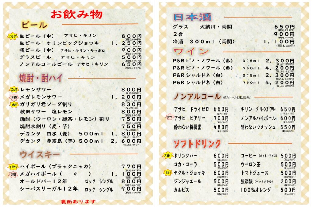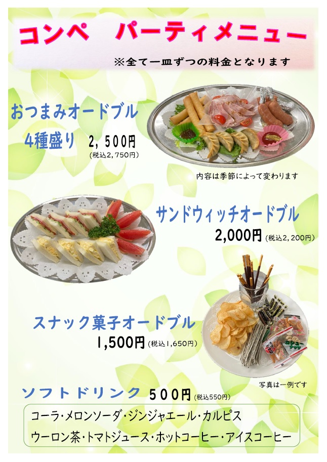 さまざまな種類の料理とドリンクをご用意しております。